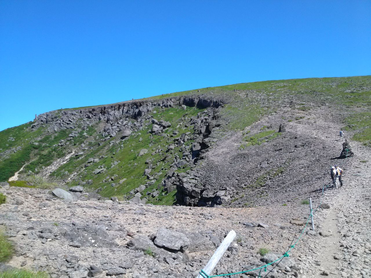 火口の端は崖になっているのですが