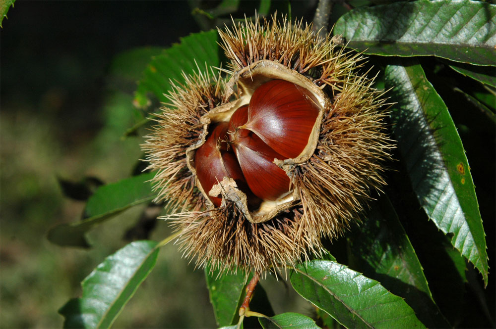 秋の風物詩である栗拾い。たいていどこの農家でも、柿や栗は来るべき冬を越すためのアイテムとして植えられている