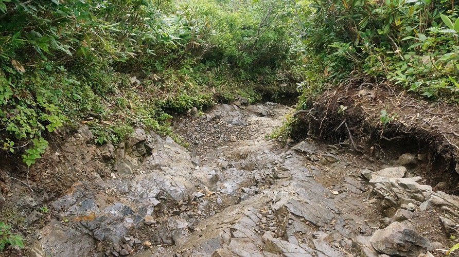 後でわかった事ですが谷川岳の岩石の蛇紋岩と言う岩は