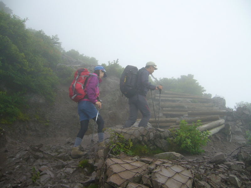 しかし悪天候のため頂上直下でやむなく下山します