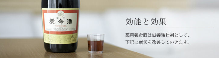 薬用養命酒を飲むことは、ふだんの食生活ではとれない生薬の薬効成分を、体の中にとり入れるということ。 毎日の服用で、さまざまな症状に対して効果が期待できます。