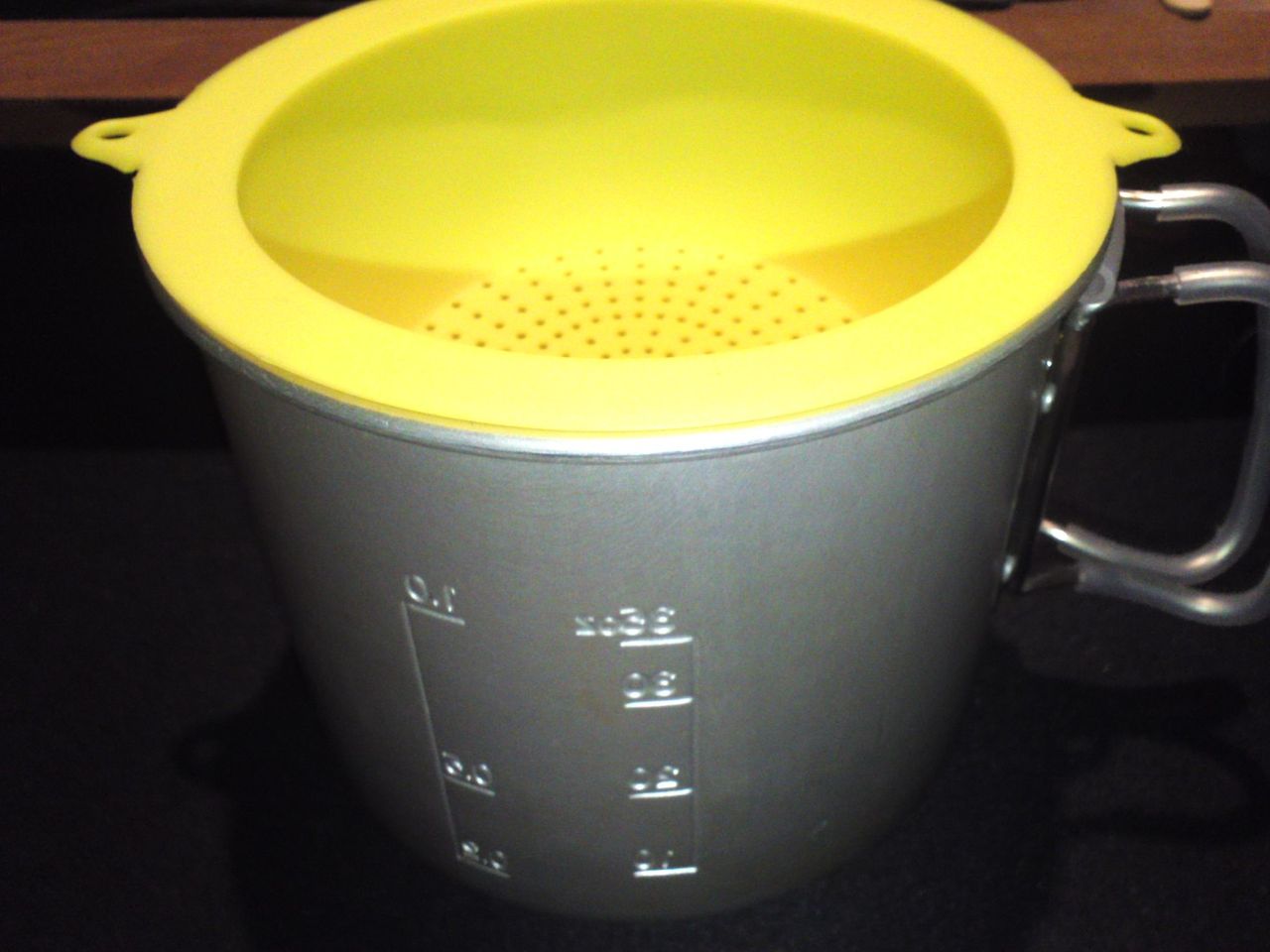 目が細かく形状そのまんまな水切り用途にもコッヘルに差し込んで肉まんやおにぎりの蒸かし暖めにも使える。