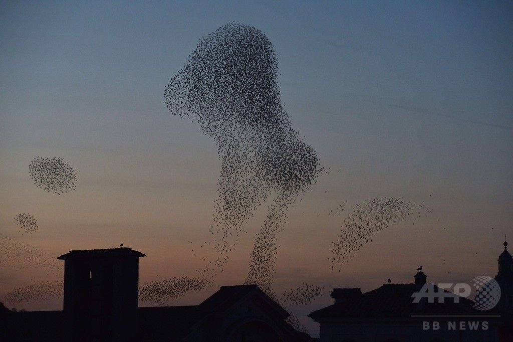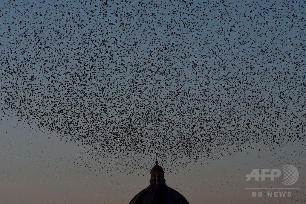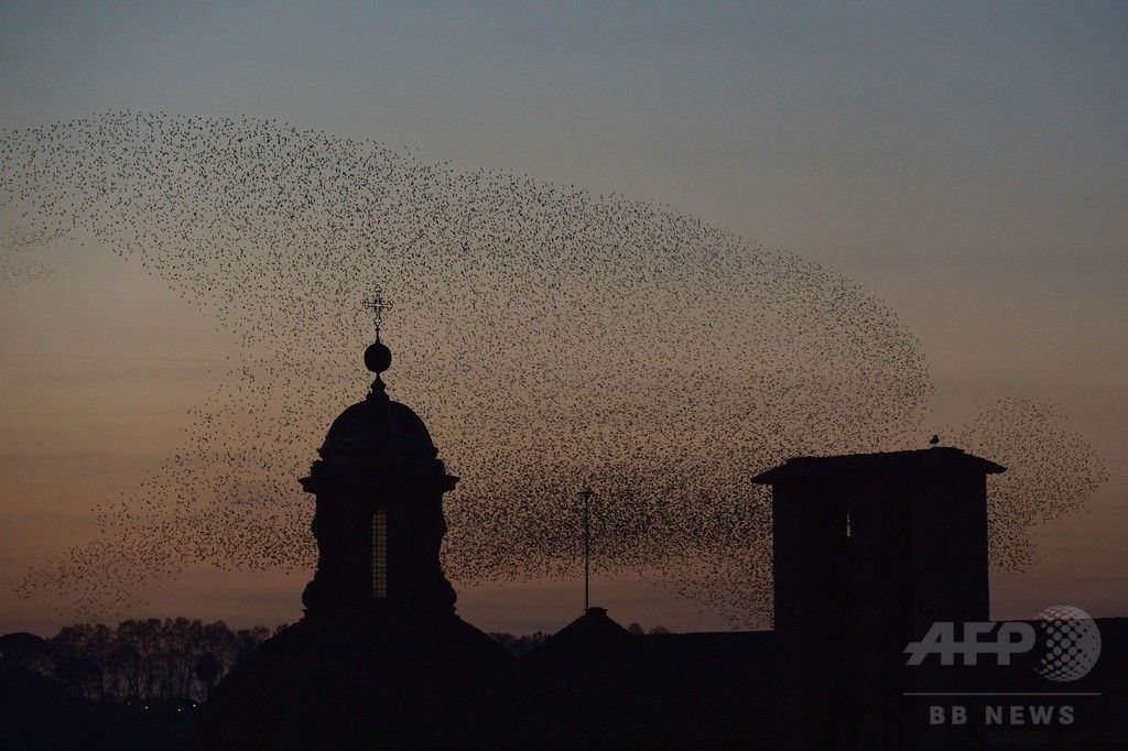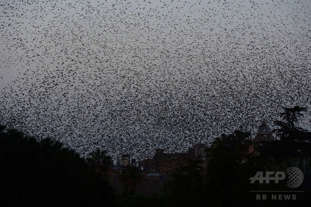【12月13日 AFP】イタリア・ローマ(Roma)市内には毎年秋から冬にかけて、北欧から100万羽ほどのムクドリが飛来する。