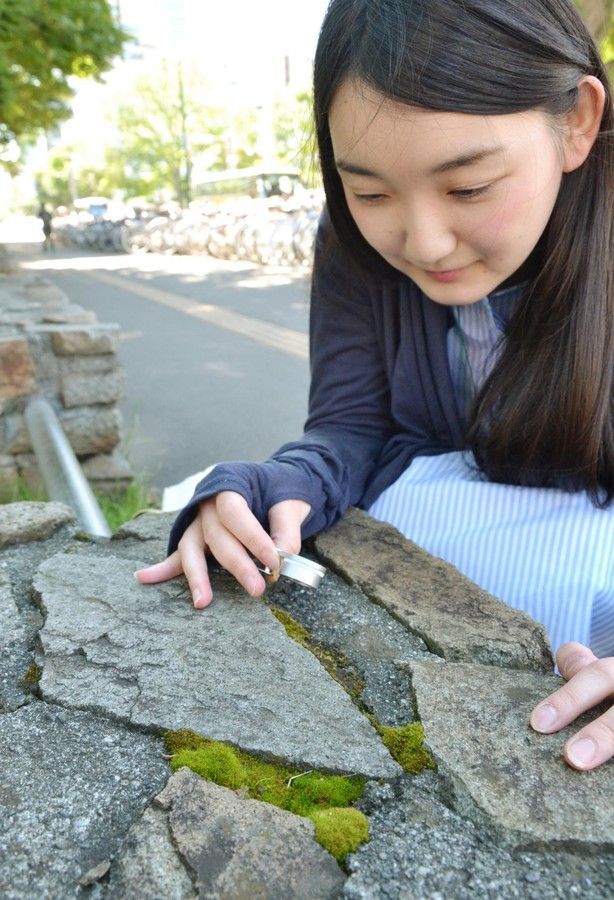 7月中旬、よく晴れた札幌市中央区の大通公園。コケ愛好家らでつくる「北海道コケと地衣類の会」の前田亜沙美さん(30)=同区=が道端にしゃがみ、ルーペ越しに目を凝らす。緑色の小さなコケが群生していた。「よーく見るとみんな形や色が違う。モコモコしてかわいいし、癒やされます」とほほ笑む。