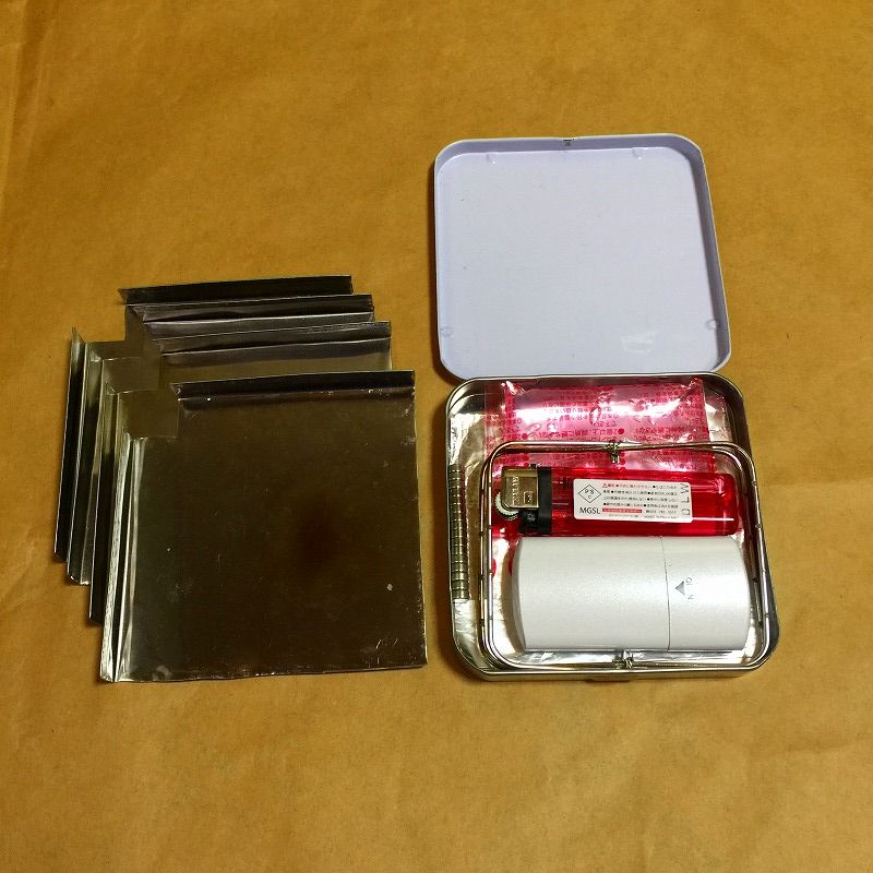 風防、アルスト、五徳、ライター、ゲル燃、アルミホイル、磁石