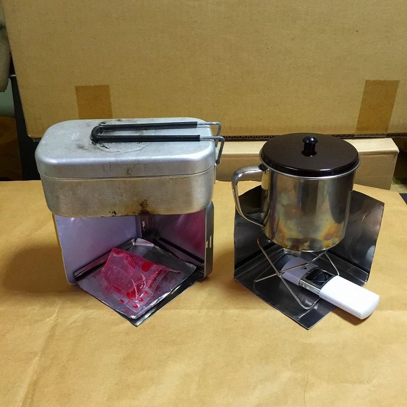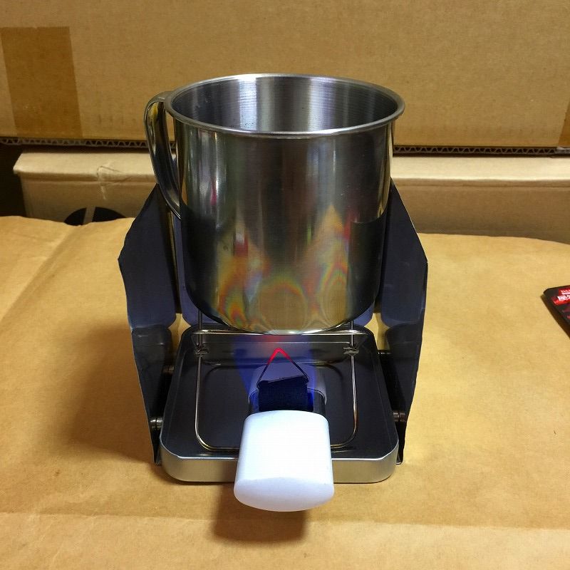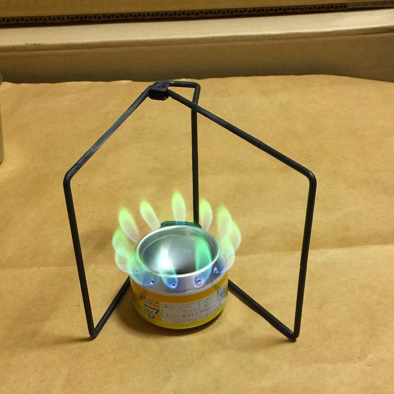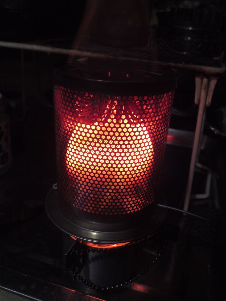 自作空き缶アルスト+自作百均遠赤ヒーター+メタ95%のケンエーアルコール。