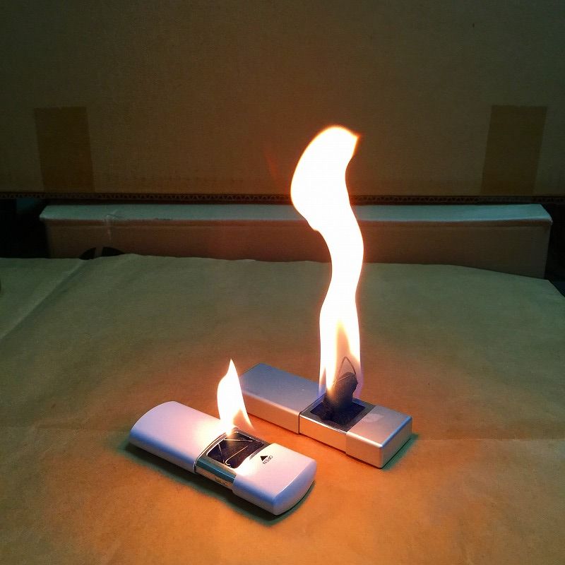 引き出した時と出さないときの炎の対比、良く見えるようにイソプロピルアルコールで撮影