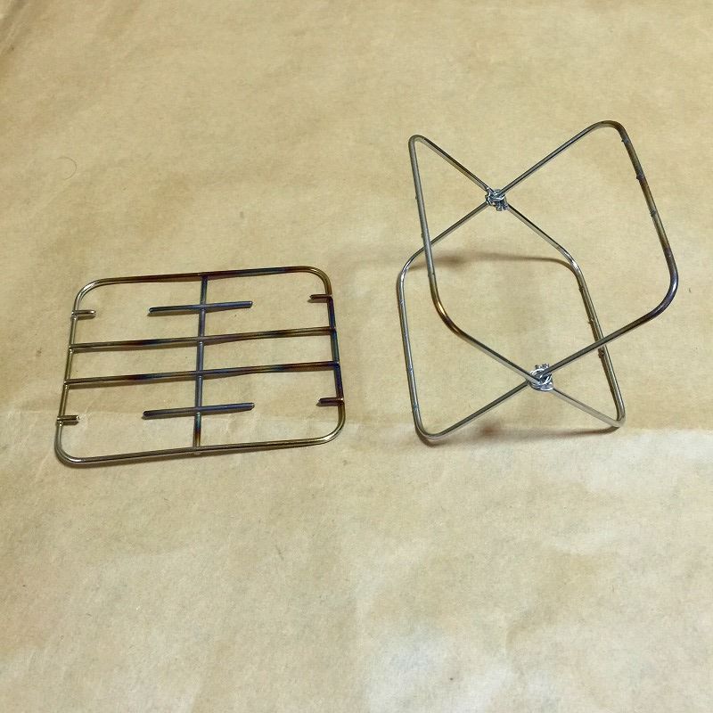 小さい物を置くときはもう1枚上に乗せると置ける、針金の縛り方である程度高さ調節が可能(2㎝くらい)