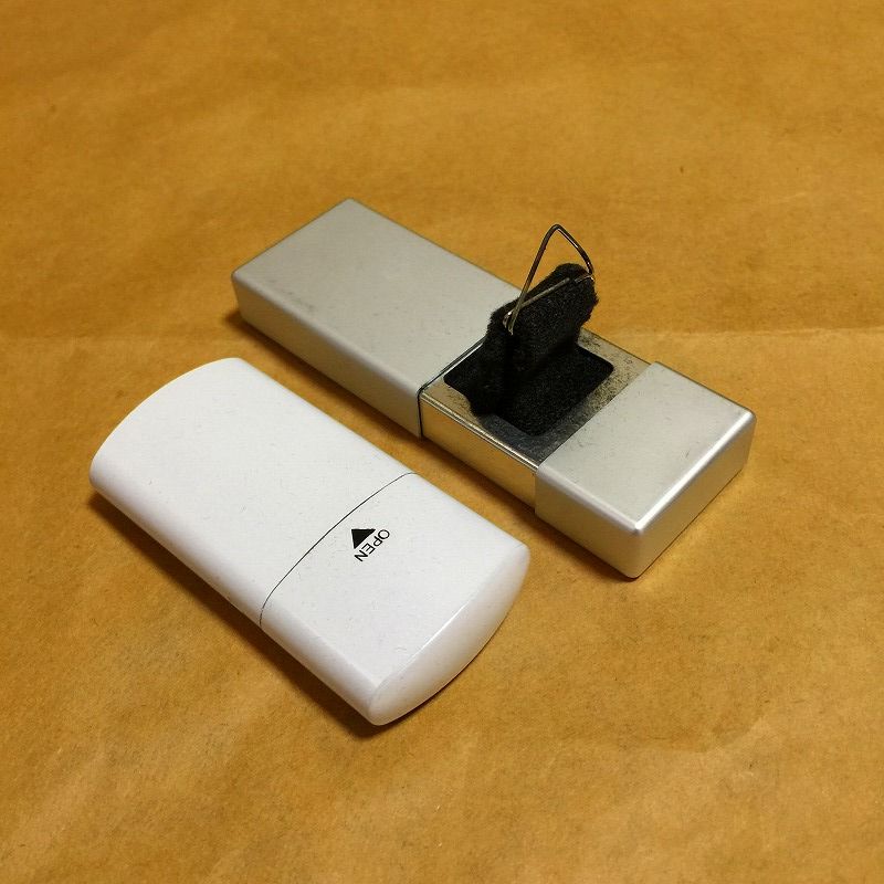 アルスト、ダイソーの携帯灰皿にカーボンフェルトを入れ引き出せるように曲げたクリップをつけた