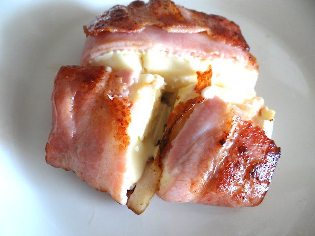 ベーコンにチーズを詰めて両面こんがり焼き上げます