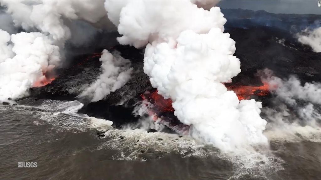 地面にできた亀裂からは、溶岩が海に流れ込み続けて新しい陸地が形成され、流入部分の面積は1.6平方キロほど拡大した。