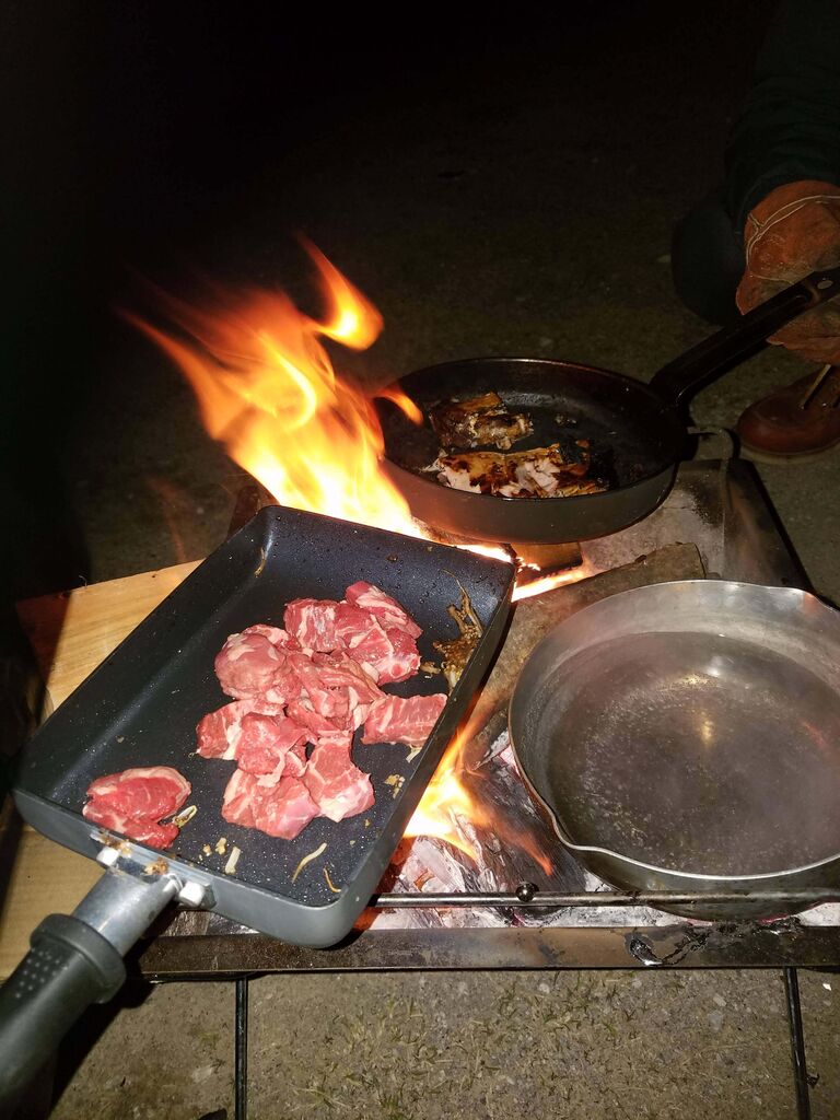 食べ物とか自分の好きなものや好きに焚き火できるから楽やで