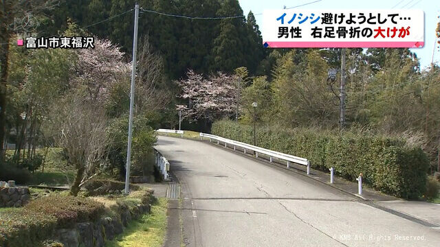 富山市の大山地区で3日朝、イノシシに遭遇した男性が避けようとした際に足の骨を折る大けがをしました。