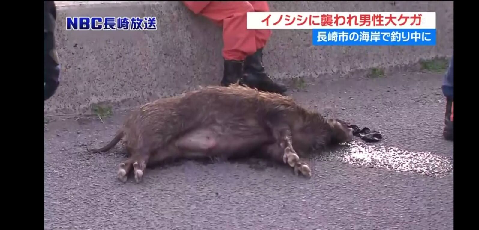 24日午後、長崎市小江町の岩場で釣りをしていた50代男性が、海から上がってきたイノシシに襲われた。男性は取っ組み合いの末にイノシシを押さえ込み、顔を海につけて窒息死させた。男性は左脚などにけがをして救急搬送されたが、命に別条はないという。
