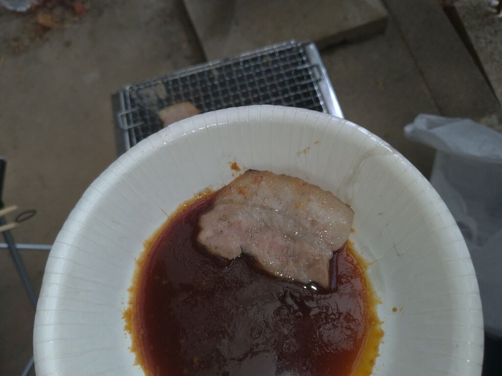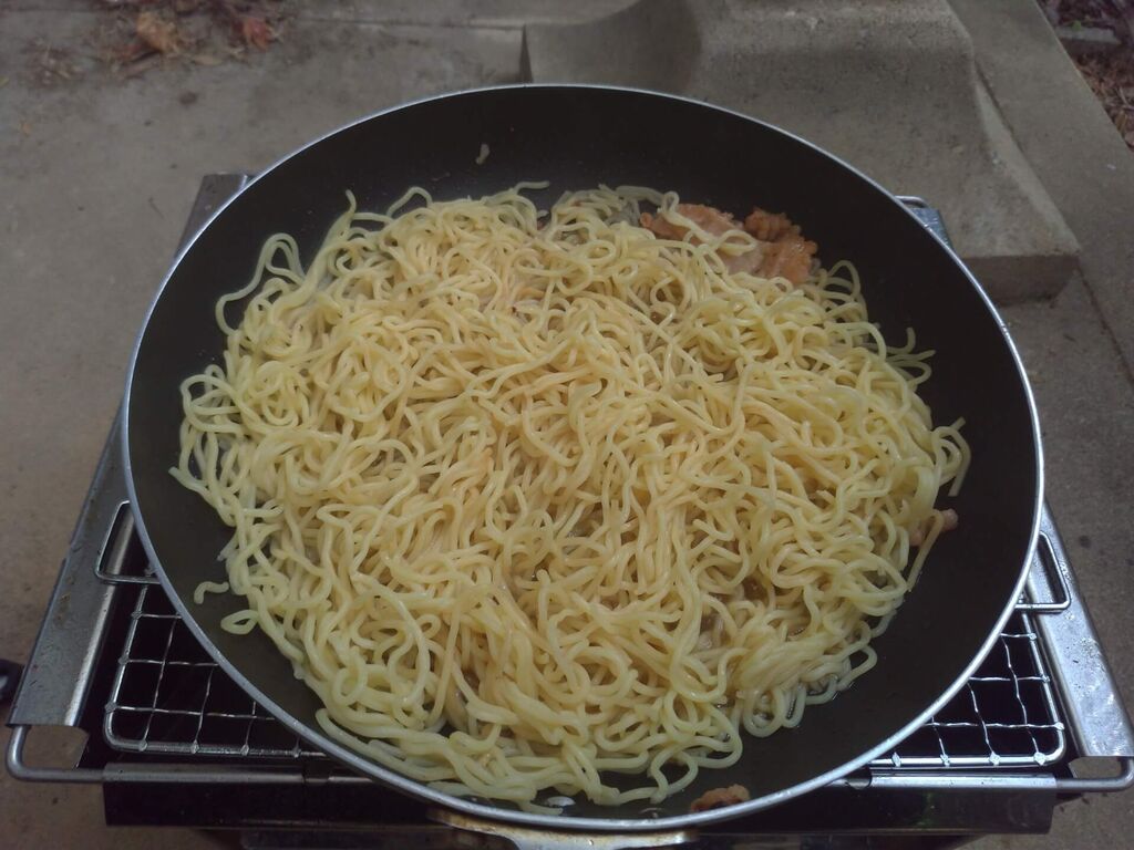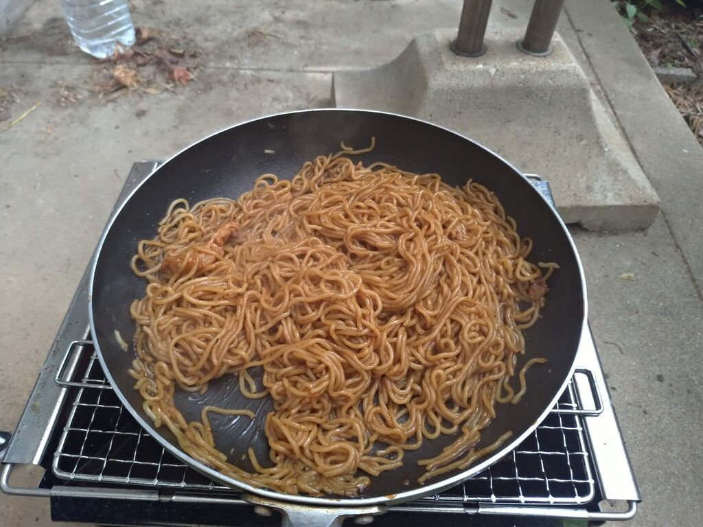 もう少し肉やいたら焼きそばでおわりかな