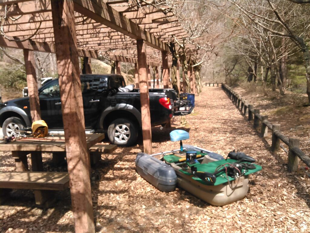 自作ロッドホルダー付いてるので釣り用でもある