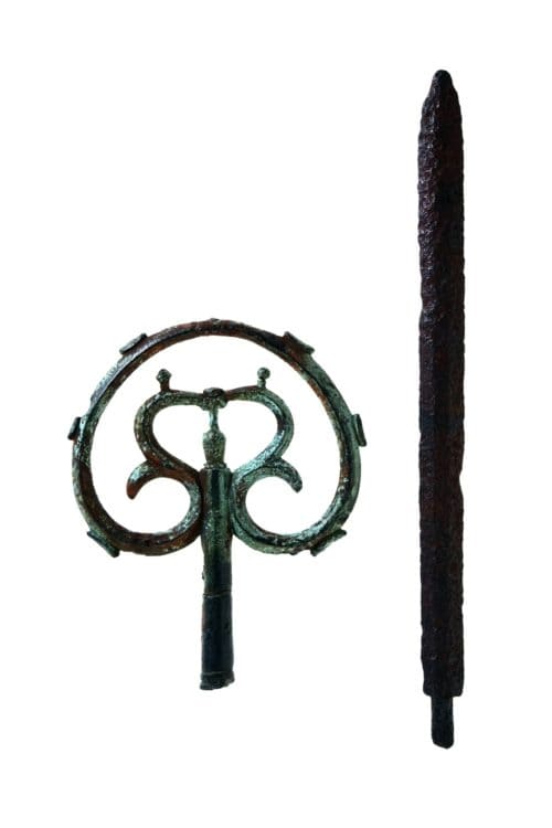 銅錫杖は明治40年、参謀本部陸地測量部員が剣岳頂上に到達したおりに山頂で発見された。この錫杖によって、剣岳は古代からすでに修験者によって登頂されていたことが判明した。