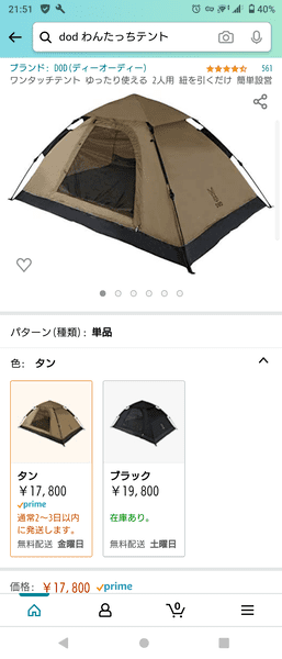ソロ用テントなんてDODの安物ワンタッチで充分だぞ