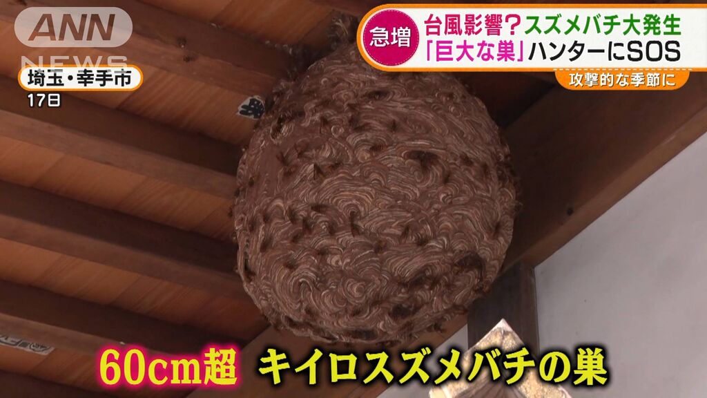 関東地方では去年から今年にかけ、台風の上陸がなかったためハチの巣が壊されず、困っている人が増えているというのです。