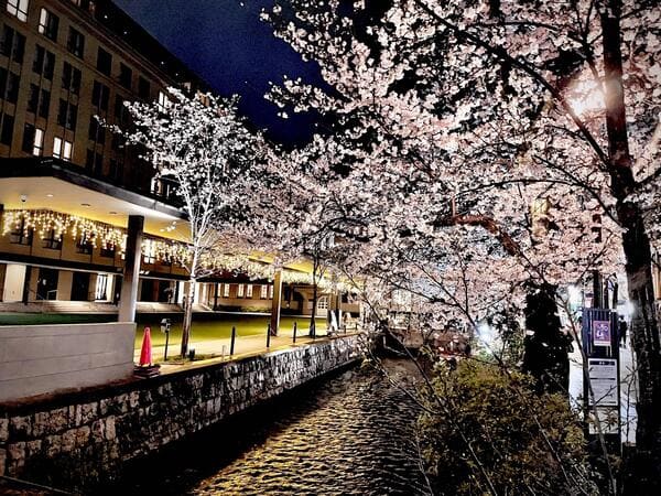 桜の写真は先斗町の1個横の通りだったと思う!