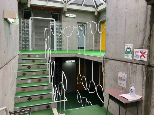 なんやこれ、アパート?ドアいっぱいあるが