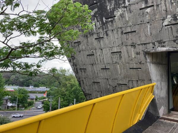 東京・八王子にある研修宿泊施設。本館はまるで大地に突き刺さった逆ピラミッドのよう。設計者の #吉阪隆正 は近代建築の巨匠 #ル・コルビュジエ の愛弟子でもあった建築家です。#新美の巨人たち pic.twitter.com/yohSTohgGf