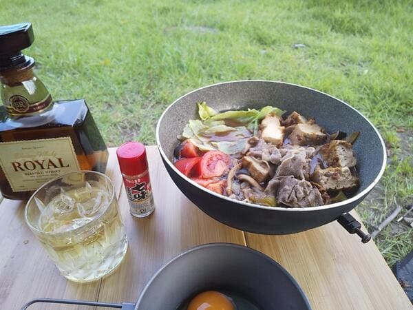 こんな明るいうちから水割りとかキャンプならではだな