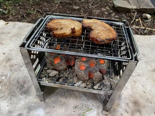 ジャンボニンニクってのが売ってたので映えキャンプに使えるかと家でチキンと共に焼いてみたが全然ニンニクの香りがしない…