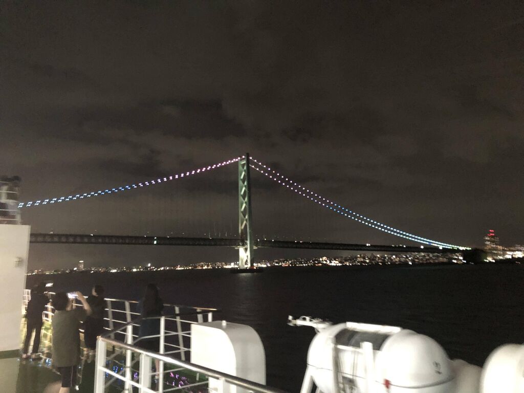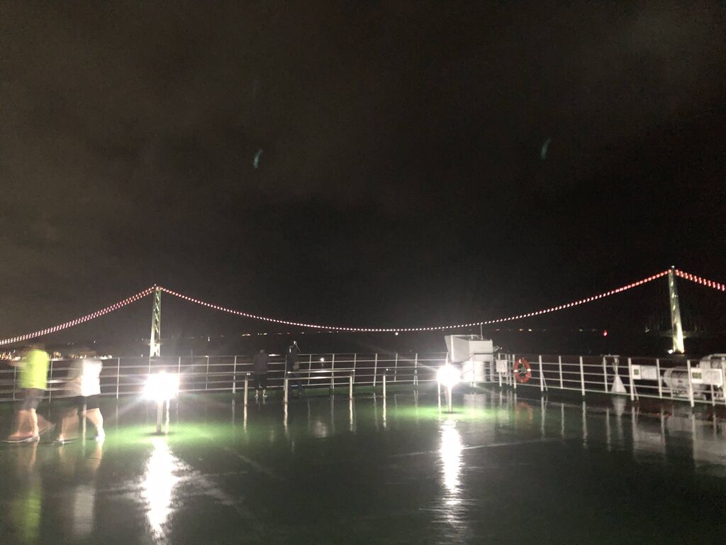 橋通過するとき、フェリーって案外速度出てるんやなってわかる