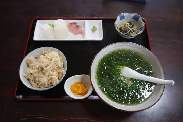 海ブドウ、ヤギの肉とモズクと、あおさのりと