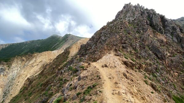 朝日岳直下の登りは吹きっさらしで飛ばされそうになったな、晴れの日だったのに