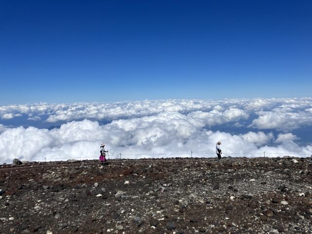 ご来光もみたい、お鉢めぐりもしたいで午後から登る馬鹿がシェラフや如何にも安い銀色の緊急シートに包まって日付変わる頃から朝焼けまで登山道に居座ってる馬鹿が悪いわけで。