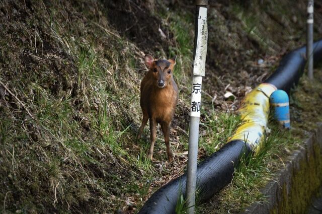 きのう鴨川の方散歩してたら、仕事の合間に散歩してたらしき作業服のベトナム人2人組が興味深そうに50cmくらい先の木立にいるキョン見てた