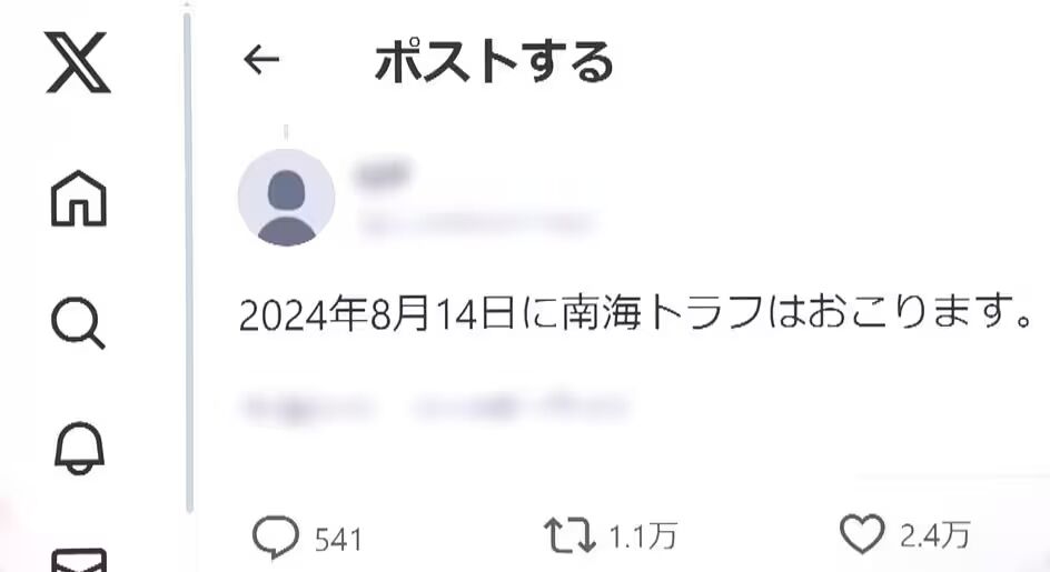 多かった「2024年8月14日に南海トラフ地震」投稿