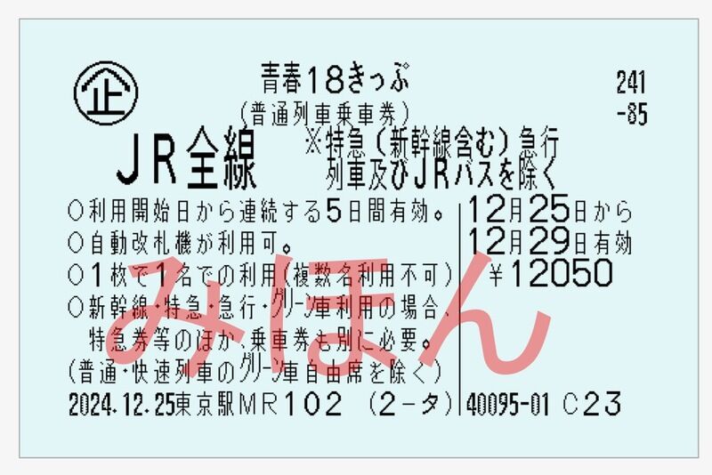 ・「青春18きっぷ」1枚につき1人、購入時に指定された利用開始日から連続する3日間または連続する5日間利用可能。