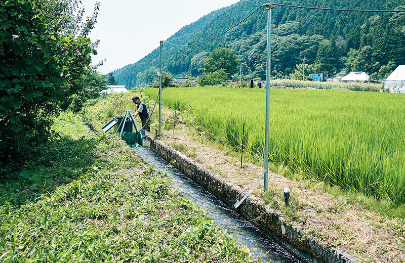 小川や用水路の水流で小型発電機を回すので川の流れにはさほど影響しない