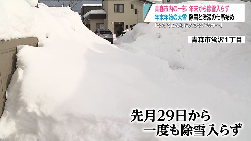 けさは渋滞も発生、青森市内の一部には年末から一度も除雪が入らず市民が憤っています。