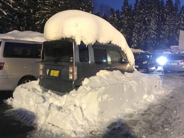 ほんまは車のミラーくらいまで雪積み上がってる