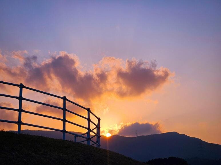 この時期なら夕方とか、5月辺りになるとこういう色合いの空が増えるで!楽しんでみて