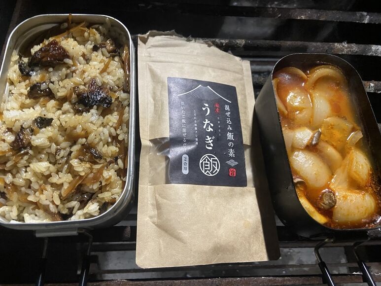 釣りをやめたから野営場に戻って夕食準備