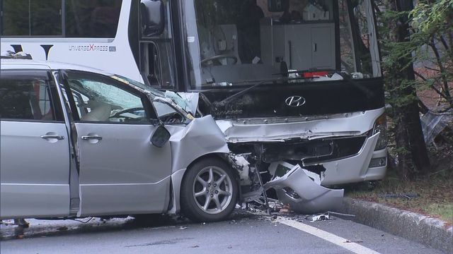 事故は11日午前10時過ぎ、富士山の麓と5合目を結ぶ富士スバルラインの4合目付近で乗用車がセンターラインを越えて観光バスと正面衝突したものです。