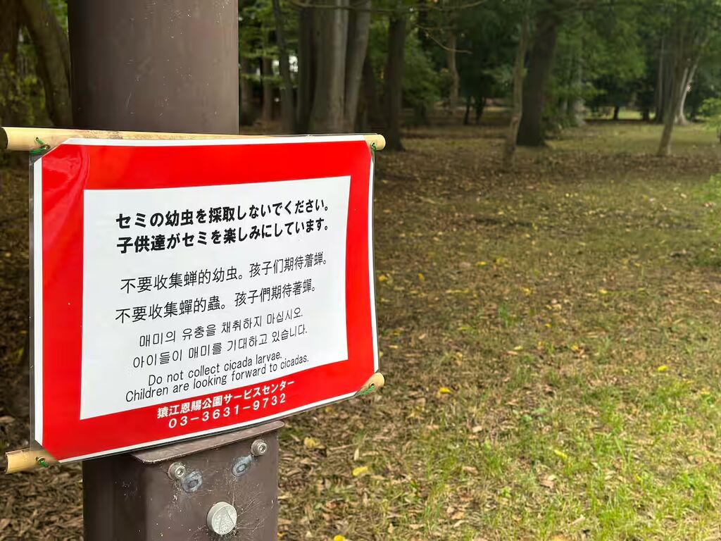 ・セミの幼虫「採取禁止」の張り紙 都内の公園、食用目的で乱獲か 中国語でも注意喚起 2025年07月14日 08:00